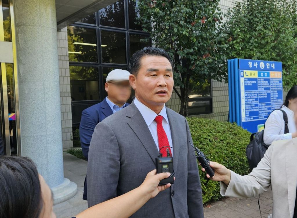 박종우 경남 거제시장이 항소심 선고 직후 취재진을 만나 대법원 상고 의사를 밝히고 있다. [사진=이세령 기자]