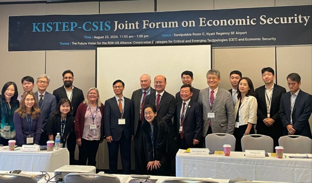 이창윤 과기정통부 1차관이 미국 샌프란시스코에서 열린 UKC 행사 중 KISTEP-CSIS 공동 포럼에 참석해 참석자들과 기념촬영을 하고 있다. 사진=과기정통부.