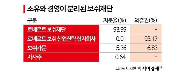 그렇다고 보쉬 재단이 그룹의 의사결정에 개입하지는 않는다. 보쉬 재단은 그룹에 대한 ‘의결권’은 전혀 보유하지 않은 독특한 구조를 자체적으로 만들었기 때문이다. 경영은 하되, 회사의 독립성은 보장할 방안을 고민했고, 결국 보쉬 재단이 보유한 지분의 의결권 전부와 보쉬 후손 등이 보유한 지분 일부의 의결권을 보쉬 신탁에 위임한 것이다.
