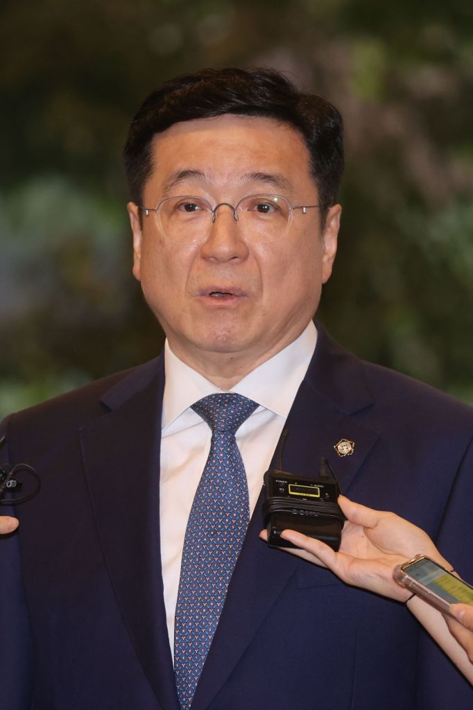 이찬희 삼성 준법감시위원장이 26일 오후 서울 서초구 삼성생명 서초타워에서 열리는 삼성 준감위 회의에 참석하며 취재진 질문에 답변하고 있다. [사진=연합뉴스]