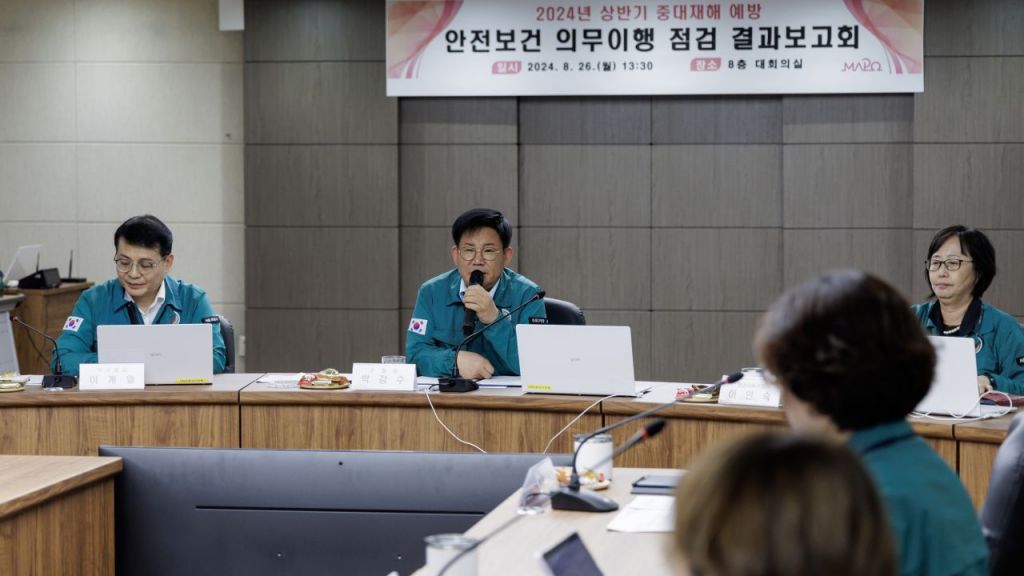 마포구(구청장 박강수)는 26일 오후 마포구청 대회의실에서 2024년 상반기 중대시민재해 예방 의무이행 점검 관련 부서장 회의를 개최했다.