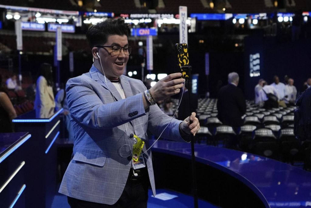 지난 19일(현지시간) 미국 시카고에서 열린 민주당 전당대회에서 한 인플루언서가 라이브 방송을 하고 있다. [이미지출처=AP연합뉴스]