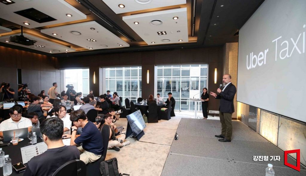 다라 코스로샤히 우버 최고경영자(CEO)가 30일 서울 중구 플라자호텔에서 열린 '우버 글로벌 CEO 방한 기념 미디어 세션'에 참석해 사업 발표 하고 있다.