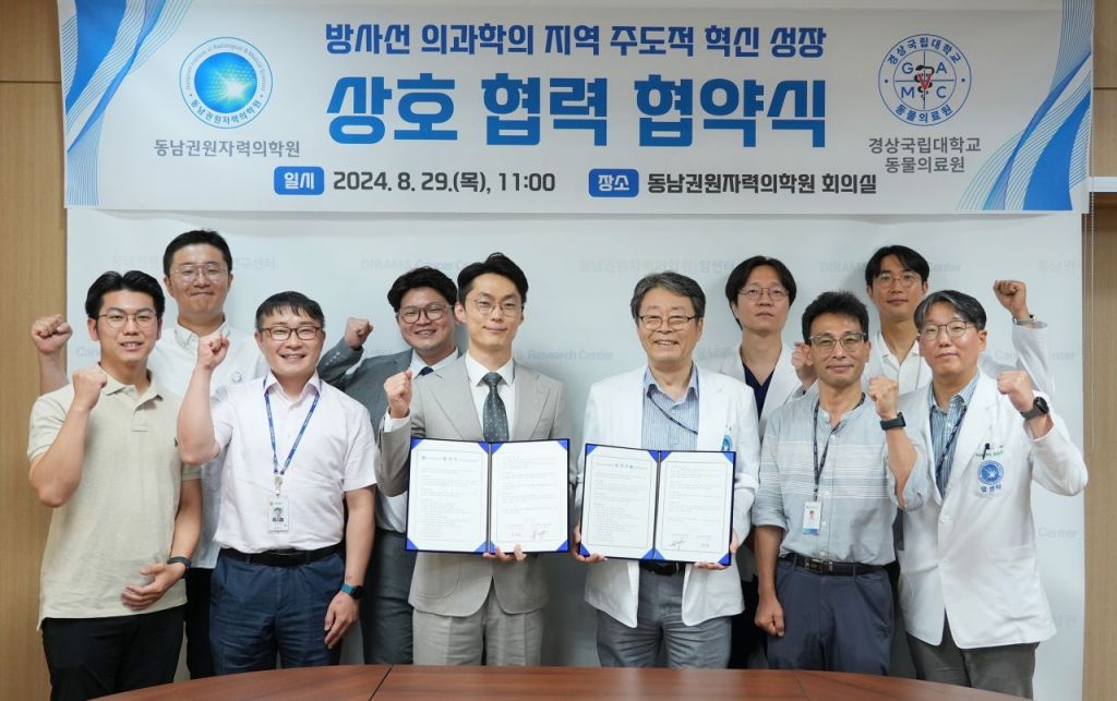 동남권원자력의학원(의학원장 이창훈)과 경상국립대학교 동물의료원(원장 황태성)이 지난 29일 의학원 생활복지관 2층 회의실에서 방사선 의과학 분야 공동 연구 및 기술협력을 위해 상호 협약을 체결했다.