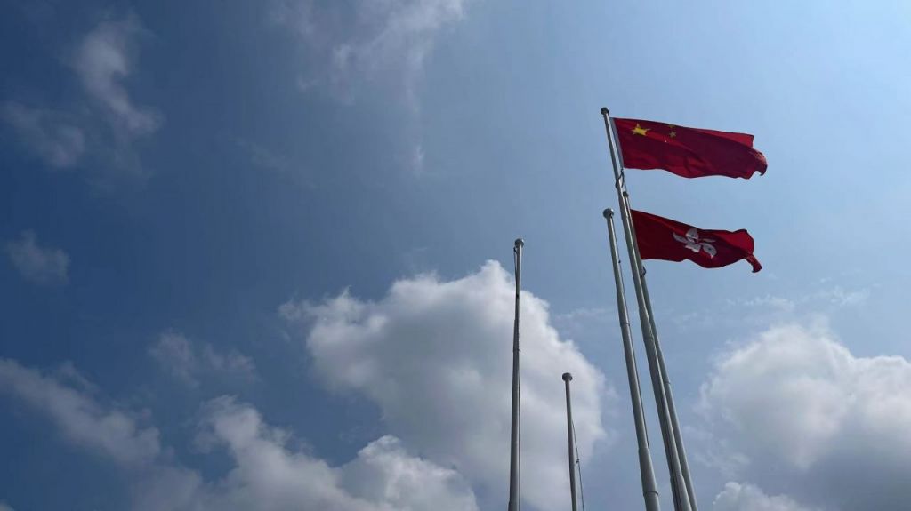 30일 홍콩 침사추이 시내에 중국 국기인 오성홍기와 홍콩기가 나란히 게양돼있다. 홍콩기는 오성홍기보다 높이 걸 수 없다고 한다. (사진 촬영= 김현정 특파원)