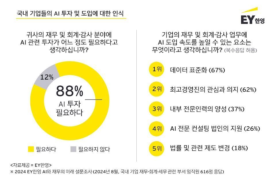 2일 글로벌 회계·컨설팅 법인 EY한영은 지난달 실시한 ‘2024 EY한영 AI와 재무의 미래’ 설문조사 결과를 공개했다. 국내 기업의 재무·회계·세무 관련 부서 임직원 616명이 참여했다.