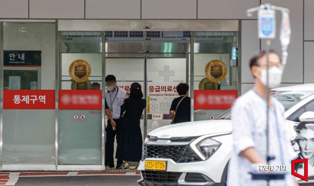 의료 공백이 장기화되면서 운영을 중단하는 대형병원 응급실이 늘고 있는 2일 서울 한 병원 응급의료센터를 찾은 내원객들이 치료를 받기 위해 대기하고 있다.