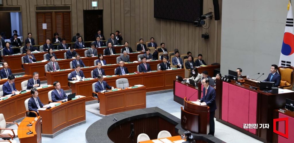 한덕수 국무총리가 2일 국회에서 2023 회계연도 결산심사를 위해 열린 예산결산특별위원회 전체회의에서 발언하고 있다. 사진=김현민 기자 kimhyun81@