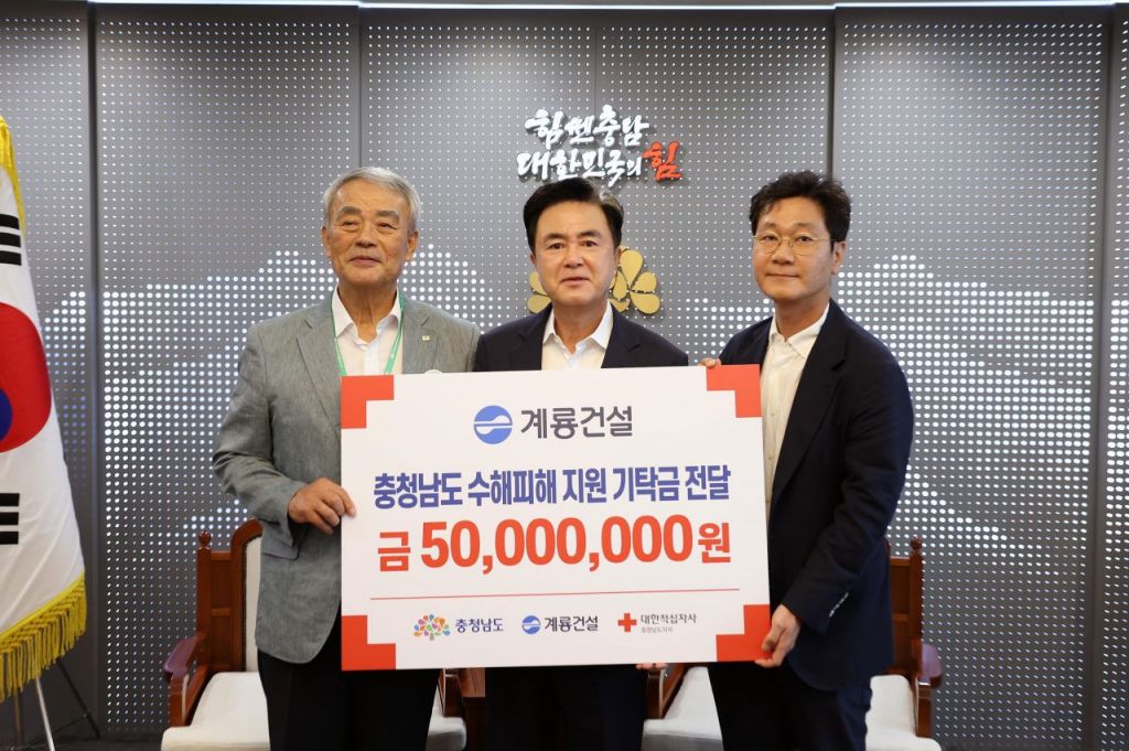 계룡건설이 충남지역 호우 피해 복구를 위한 성금 5000만원을 기탁했다.