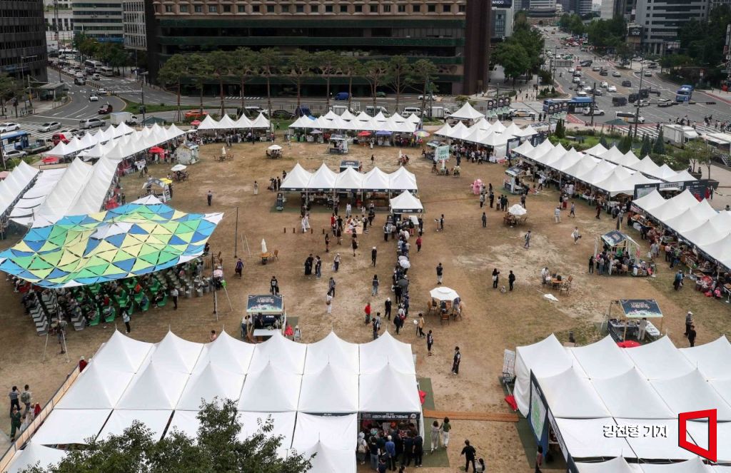 추석을 2주가량 앞둔 2일 서울 중구 서울광장에서 '2024년 추석 농수특산물 서울장터'가 열리고 있다. 서울시는 9월 2∼4일 서울광장에서 '2024 추석 농수특산물 서울장터'를 연다고 지난달 29일 밝혔다.올해는 11개 광역 자치단체 및 104개 시·군 농가가 참여하며, 우수 농수특산물을 최대 30%까지 저렴하게 구매할 수 있다.
