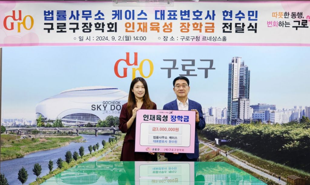 이날 전달식에서 법률사무소 케이스 대표 현수민 변호사는 “학생들의 큰 꿈을 키우는데 뜻깊게 쓰이길 바란다”라며 장학금 300만 원을 기탁했다.