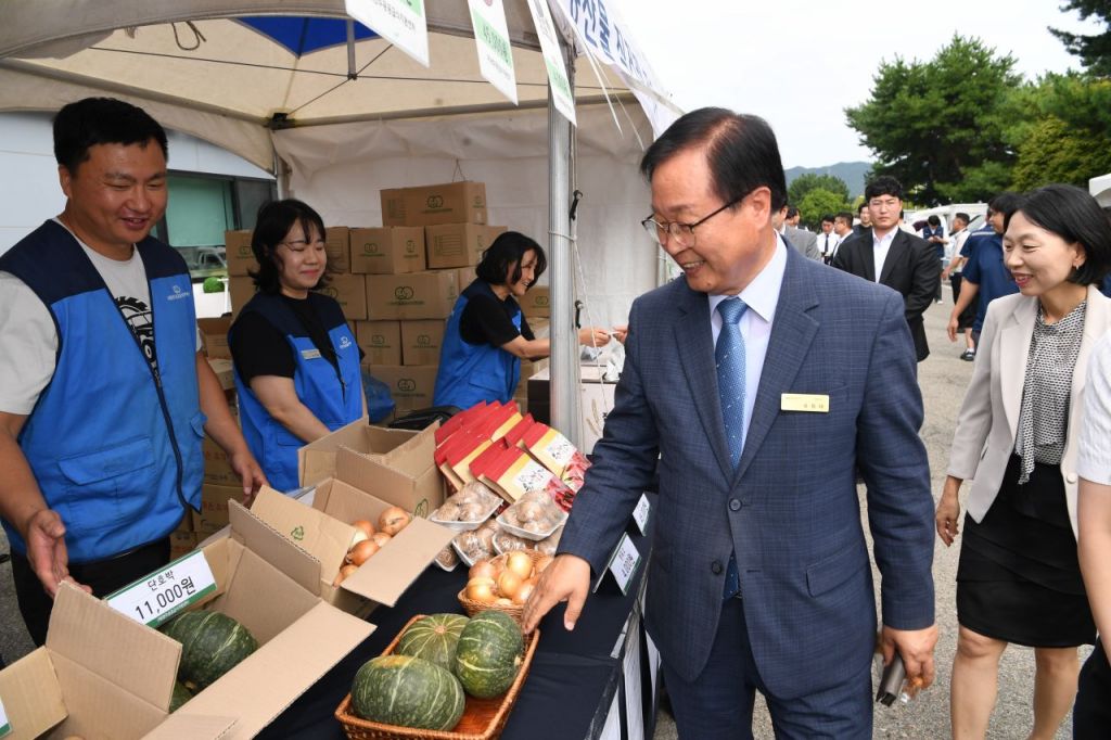 5일 완주군에 따르면 직거래 장터에는 유희태 완주군수, 유의식 완주군의회 의장, 임만규 현대자동차 전주공장 공장장, 김용현 완주산단진흥회 회장 등이 함께해 장터 활기를 더했다.