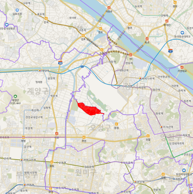 부천시 오정구 대장동 일원 토지거래허가구역 위치도