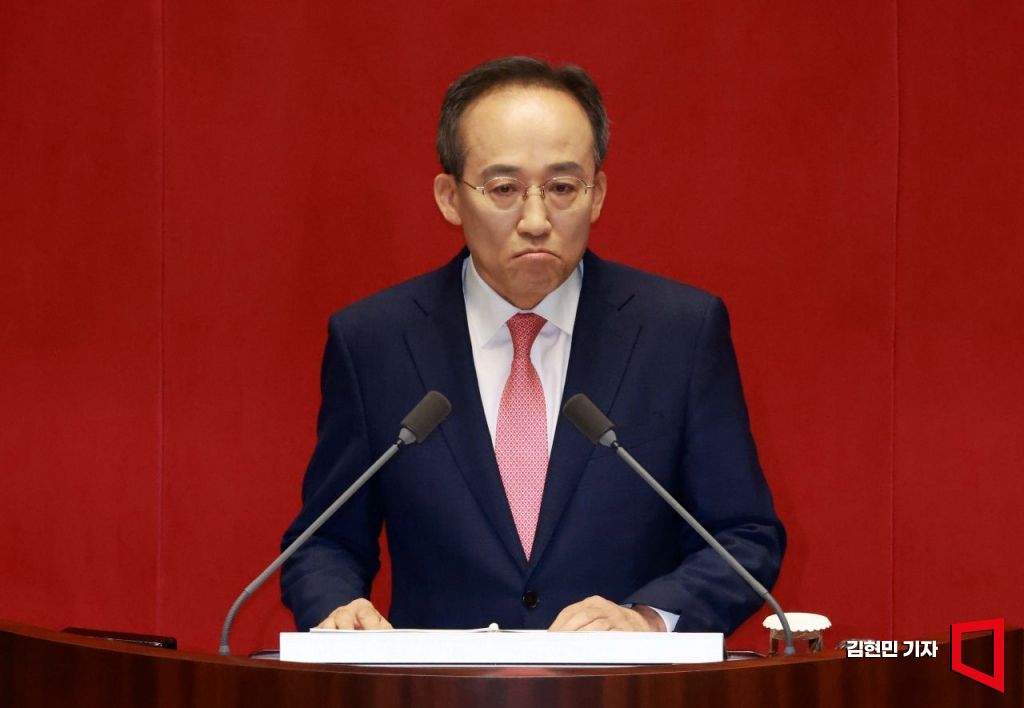 추경호 국민의힘 원내대표가 5일 국회에서 열린 본회의에서 교섭단체 대표연설을 하고 있다. 사진=김현민 기자 kimhyun81@