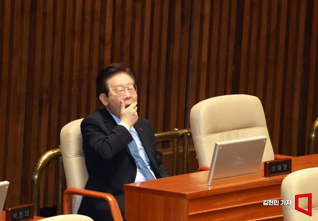 이재명 더불어민주당 대표가 5일 국회에서 열린 본회의에서 교섭단체 대표연설에 참석하고 있다. 사진=김현민 기자 kimhyun81@