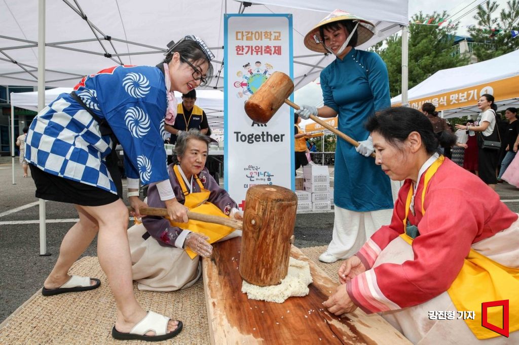 민족 대 명절 추석을 앞둔 5일 서울 양천구 대한적십자사 서울시자 서부봉사관에서 열린 '다같이학교 한가위 축제'에서 다문화 여성들이 송편 반죽을 만들고 있다.