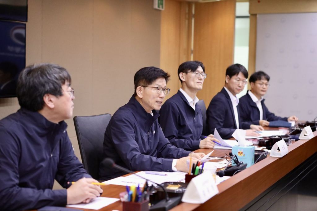 김문수 고용노동부 장관(왼쪽에서 두번째)이 5일 서울지방고용노동청에서 큐텐 계열사 임금체불 관련 점검 회의를 하고 있다. / [사진제공=고용노동부]