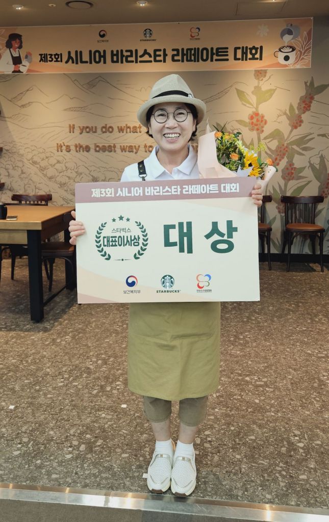 시니어 바리스타 라테아트 대회에서 대상을 받은 윤경애씨. [사진제공=화성시]