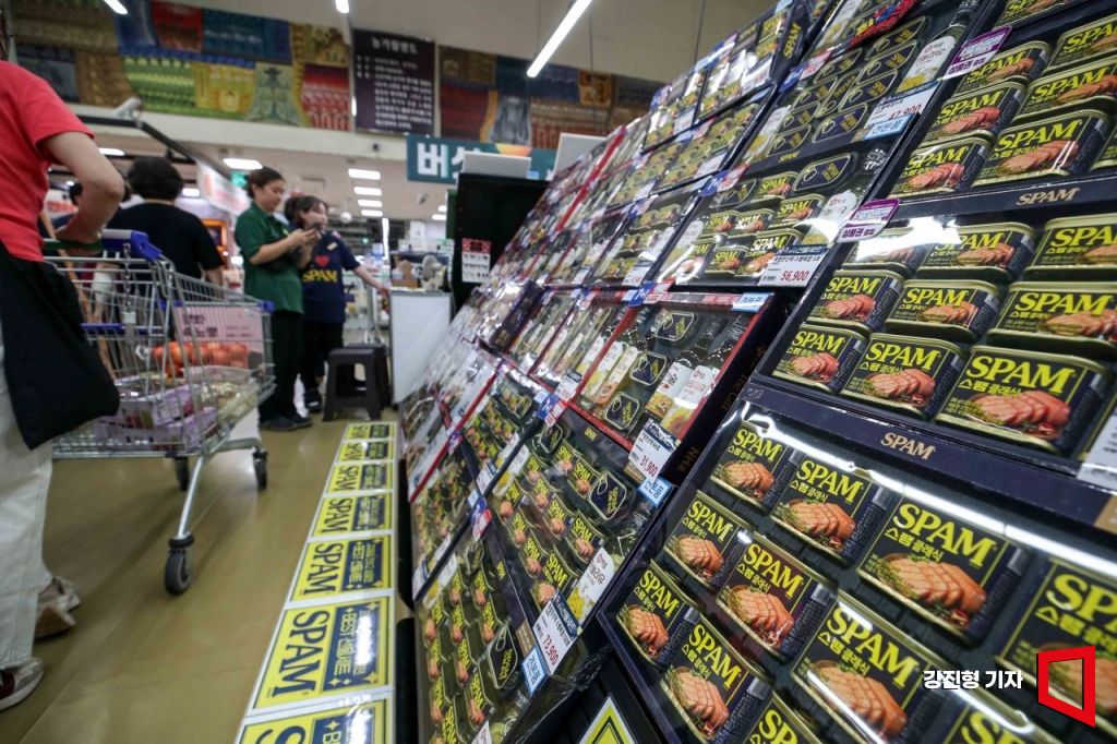 민족 대명절 추석을 앞두고 있는 5일 서울 서초구 하나로마트 양재점에 햄 선물세트가 진열돼 있다.