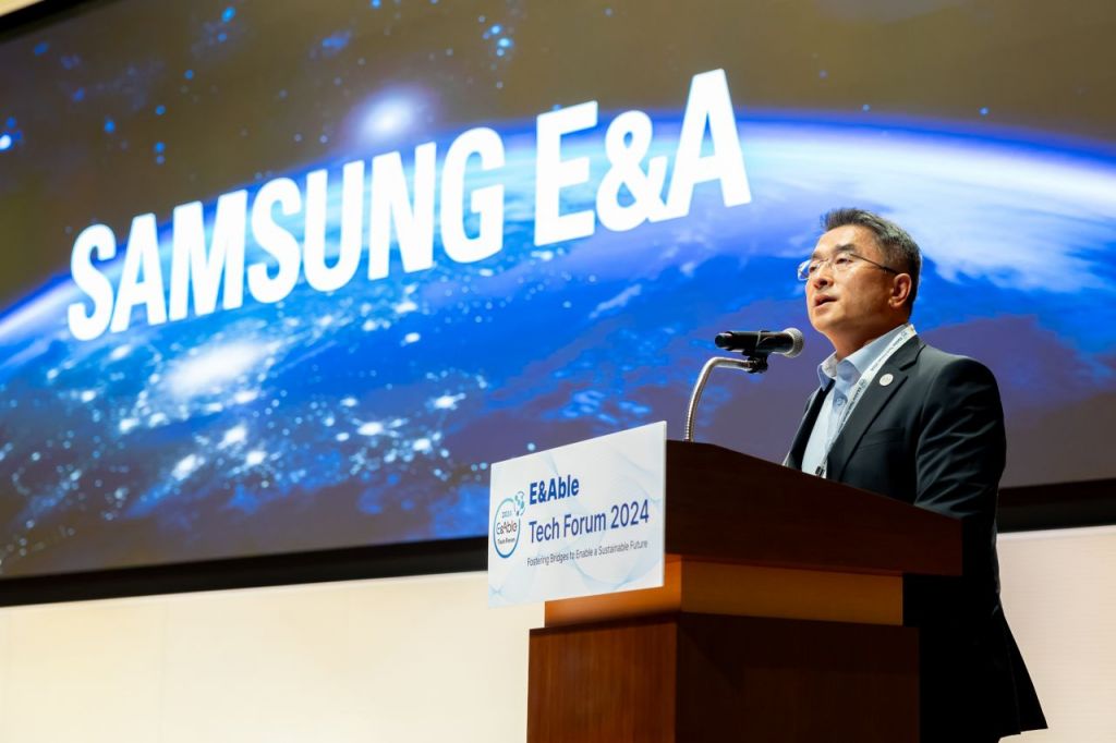 남궁 홍 삼성E&A 사장이 '이네이블(E&Able) 테크 포럼'에서 개회사를 하고 있다.[사진제공=삼성E&A]