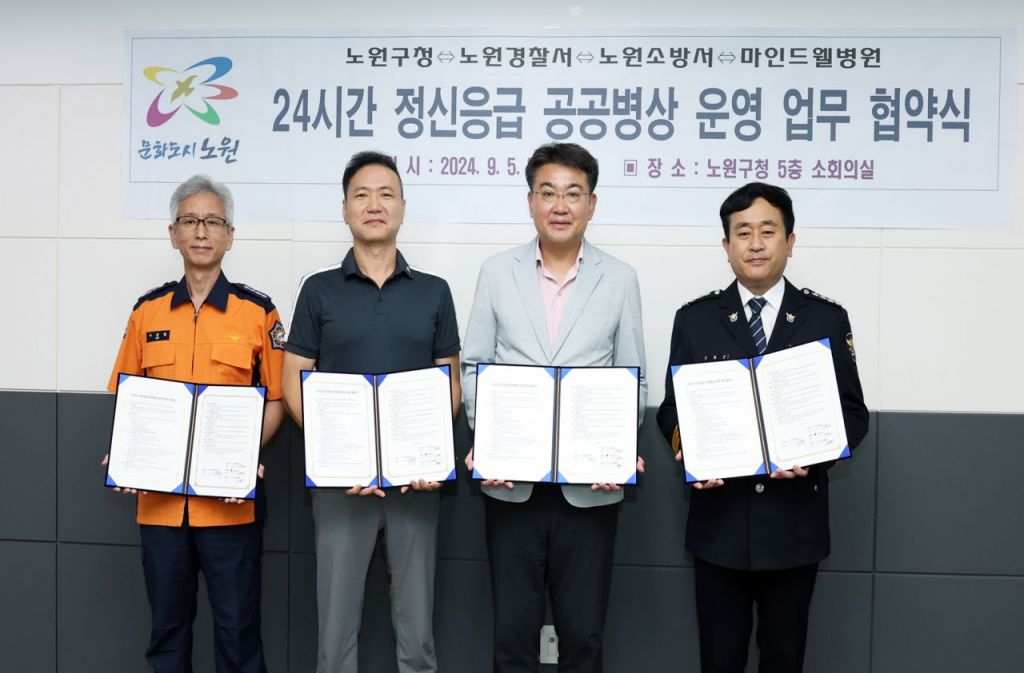 오승록 노원구청장은 5일 오후 4시 노원경찰서-노원소방서-마인드웰병원과 함께 24시간 정신응급 공공병상 업무 협약을 체결했다.