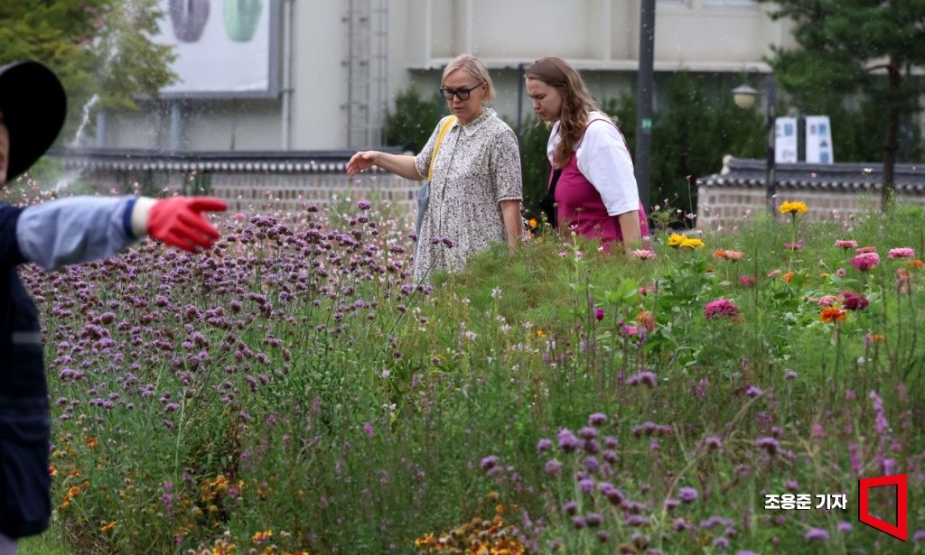 가을이 본격적으로 시작된다는 절기상 백로인 6일 서울 종로 송현광장을 찾은 외국인관광객이 꽃길을 걷고 있다. 사진=조용준 기자 jun21@