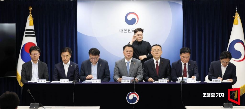 방기선 국무조정실장(왼쪽에서 네번째)이 6일 서울 종로 정부서울청사에서 '전기차 화재 안전관리 대책'을 발표하고 있다. 사진=조용준 기자 jun21@