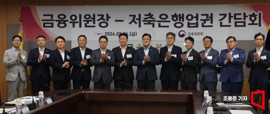 김병환 금융위원장이 6일 서울 정부청사에서 열린 저축은행업권 간담회에 참석, 저축은행 관계자들과 기념촬영을 하고 있다. 사진=조용준 기자 jun212
