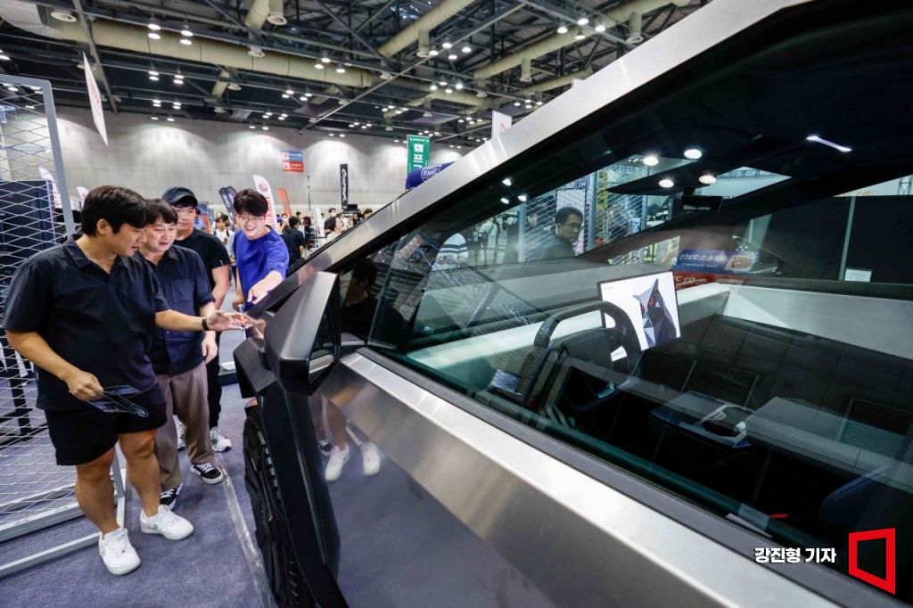 6일 경기 고양 킨텍스에서 열린 '2024 오토살롱위크'에서 테슬라 '사이버트럭'이 국내 첫 공개되고 있다.