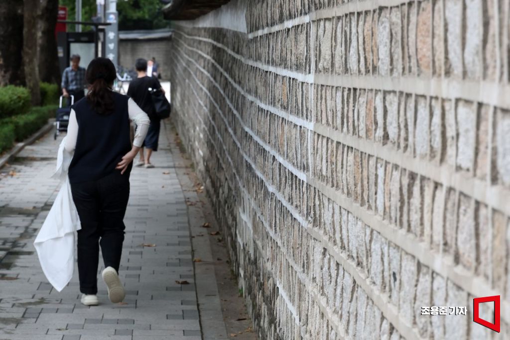 가을이 본격적으로 시작된다는 절기상 백로인 6일 서울 종로 창경궁 돌담길을 걷는 시민들의 옷차람에서 가을이 다가온 것을 실감할 수 있다. 사진=조용준 기자 jun21@