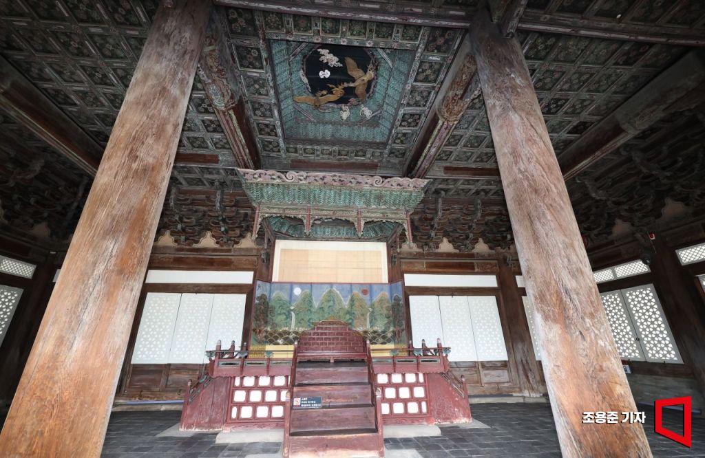현존하는 가장 오래된 궁궐 정전인 ‘창경궁 명정전’의 내부에 들어가 관람할 수 있는 특별행사가 열린다. 국가유산청은 이달 26일부터 11월 3일까지(매주 목요일~일요일) 명정전 내부 특별관람을 실시하며 6일부터 홈페이지를 통해 예약신청을 받는다. 사진은 이날 창경궁 명정전의 내부 모습. 사진=조용준 기자 jun21@