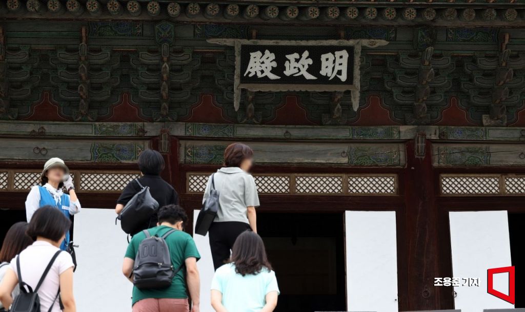 현존하는 가장 오래된 궁궐 정전인 ‘창경궁 명정전’의 내부에 들어가 관람할 수 있는 특별행사를 앞둔 6일 서울 종로 창경궁을 찾은 시민들이 명정전을 관람하고 있다. 국가유산청은 이달 26일부터 11월 3일까지(매주 목요일~일요일) 명정전 내부 특별관람을 실시하며 6일부터 홈페이지를 통해 예약신청을 받는다. 사진=조용준 기자 jun21@