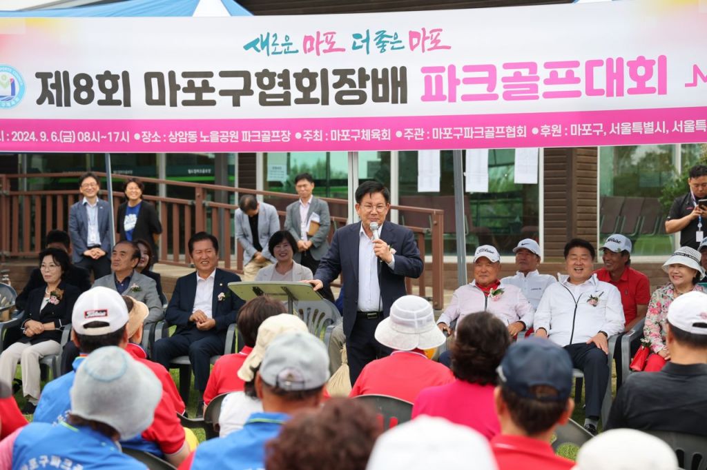 박강수 마포구청장은 6일 오전 ‘제8회 마포구협회장배 파크골프대회’가 열린 상암동 노을공원 파크골프장을 찾았다.