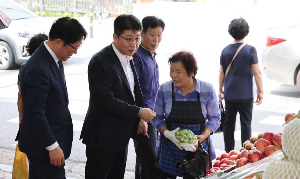 간담회에 이어 박 청장을 비롯한 직원들은 함께 시장 곳곳을 둘러보면서 시장 상인들의 애로·건의 사항 등 현장의 소리를 경청하고 격려했다. 이들은 온누리 상품권으로 과일, 채소, 직원 간식 등 농산물을 구매하기도 했다.