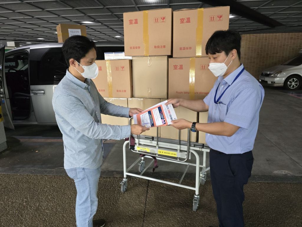 감염취약시설에 자가진단키트 등 물품 전달. 강남구 제공.