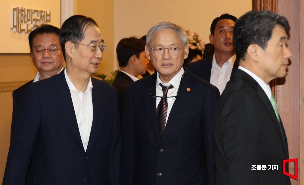 한덕수 국무총리를 비롯해 국무위원들이 19일 서울 종로 정부서울청사에서 열린 국무회의에 참석하고 있다. 사진=조용준 기자 jun21@