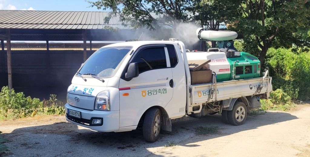 용인시의 한 축산농가에서 방역차량이 소독을 실시하고 있다. [사진제공=용인시]