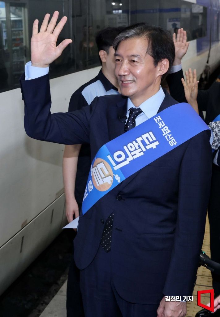 이재명 더불어민주당 대표(오른쪽)와 조국 조국혁신당 대표가 지난 13일 서울 용산역에서 추석 귀성인사를 하고 있다. 사진=김현민 기자 kimhyun81@