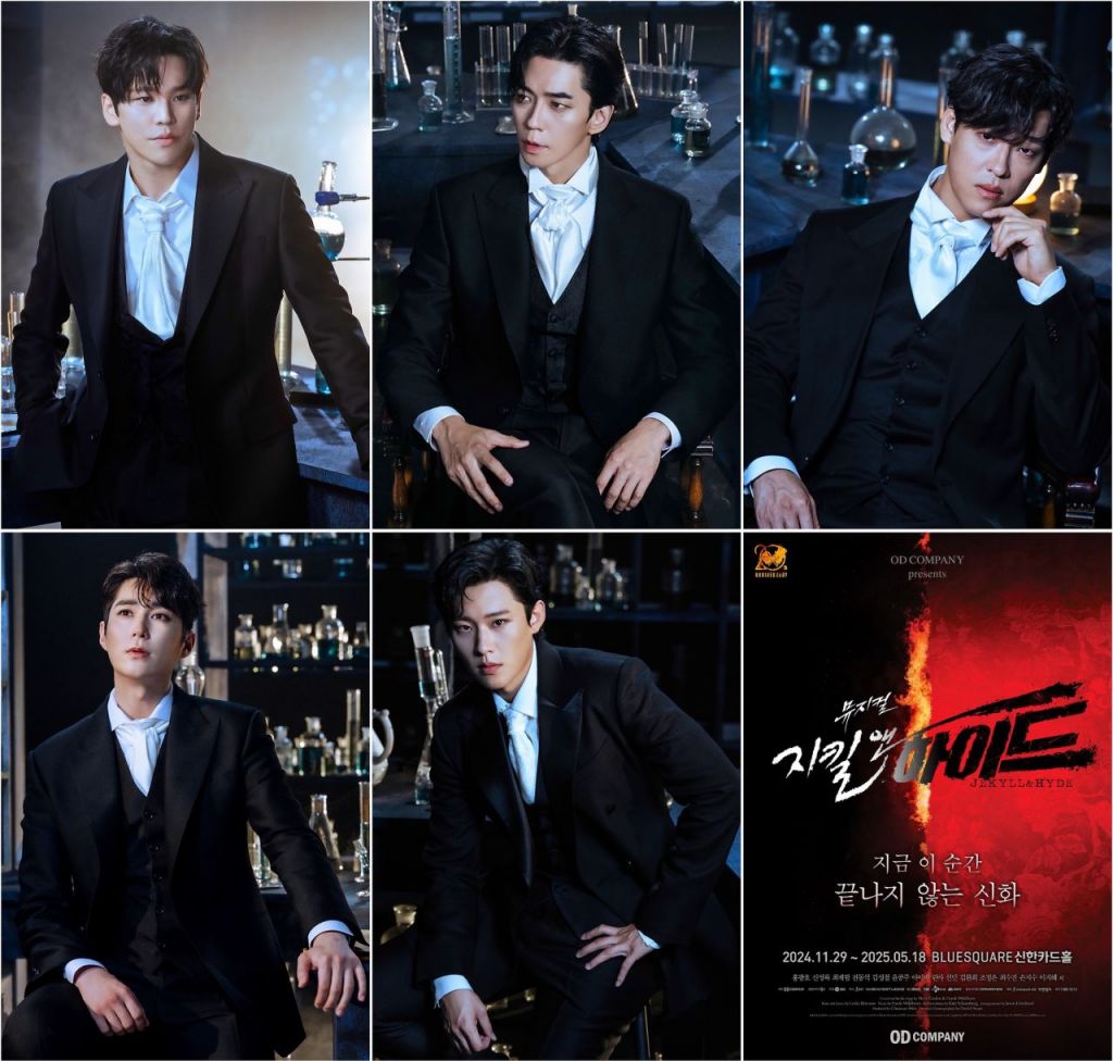 지킬, 하이드 역의_홍광호, 신성록, 최재림, 김성철, 전동석(왼쪽 상단부터 시계 방향) [사진 제공= 오디컴퍼니]