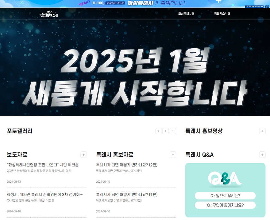 경기도 화성시는 내년 특례시 출범을 100일 앞두고 23일 전용 홈페이지를 개설했다고 이날 밝혔다.