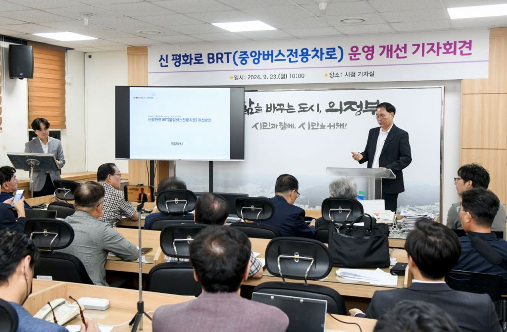 박춘수 의정부시 교통국장은 23일 기자회견을 열고 이 같은 내용을 골자로 하는 '신평화로 중앙버스전용차로 운영 개선 방안'을 발표했다.