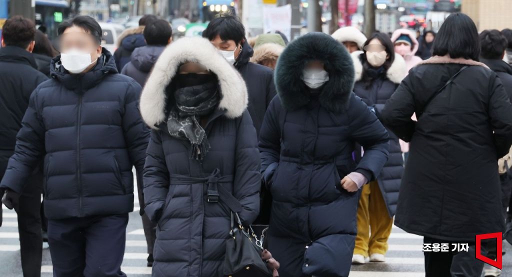 광화문 네거리에서 두툼한 복장을 한 직장인들이 출근길을 서두르고 있다. 사진=조용준 기자 jun21@