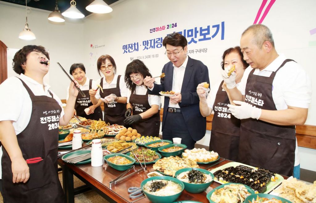 25일 전북 전주시에 따르면 이날 시청 구내식당에서 '전주페스타 2024'의 전주 손맛 음식 판매 존의 대표 메뉴를 평가한 '맛잔치·맛자랑 미리 맛보기' 시식회를 열었다.