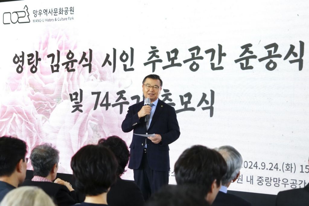 중랑구(구청장 류경기)가 24일 망우역사문화공원에서 김영랑 시인의 추모 공간 준공식 및 추모식을 개최했다.