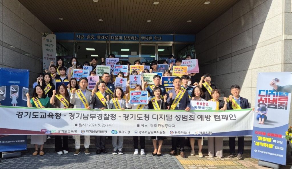 경기도교육청(교육감 임태희)이 학교 내 디지털 성범죄 예방을 위해 경찰청, 경기도청과 함께 디지털 성범죄 예방 캠페인을 25일 광주 탄벌중학교에서 실시했다.