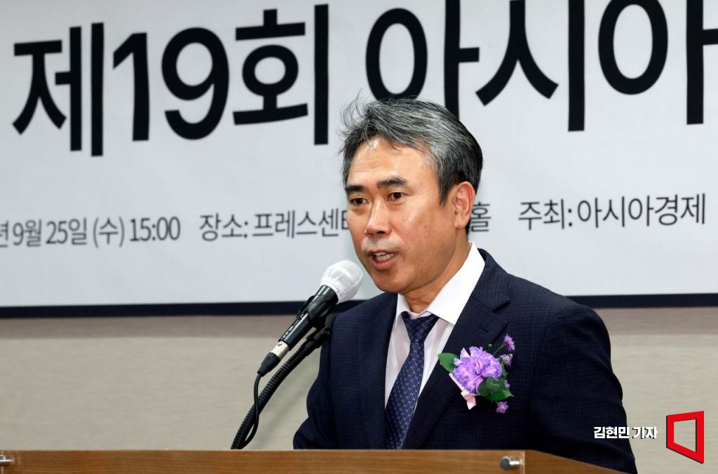 유창수 서울시 행정2부시장이 25일 서울 중구 프레스센터에서 열린 제19회 아시아건설종합대상 시상식에서 축사하고 있다. 사진=김현민 기자 kimhyun81@