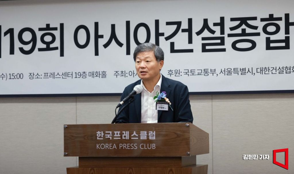 우병현 아시아경제 대표가 25일 서울 중구 프레스센터에서 열린 제19회 아시아건설종합대상 시상식에서 인사말하고 있다. 사진=김현민 기자 kimhyun81@