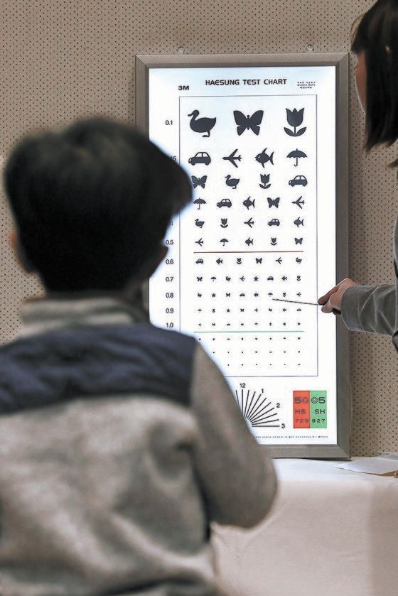 예비 초등학생인 어린이가 시력검사를 하고 있다. [사진출처=연합뉴스]