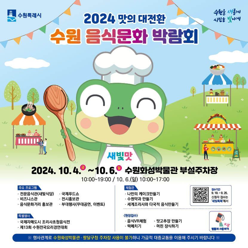 수원음식문화박람회가 오는 10월 4~6일 수원화성박물관 부설주차장에서 열린다.