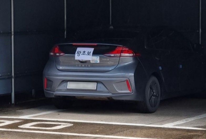 공개된 사진에는 한 막내 직원이 회색 아이오닉 차량 뒷면 유리창에 '왕초보'라 크게 적힌 종이를 붙여 놓은 모습이 담겨 있다. 이는 장롱면허인 자신의 운전실력이 걱정돼 다른 운전자들에게 방해되지 않도록 붙인 것으로 추측돼 보는 이들의 웃음을 자아냈다. 특히 운전석 공간이 비좁게 주차된 점도 누리꾼들의 이목을 끌었다.